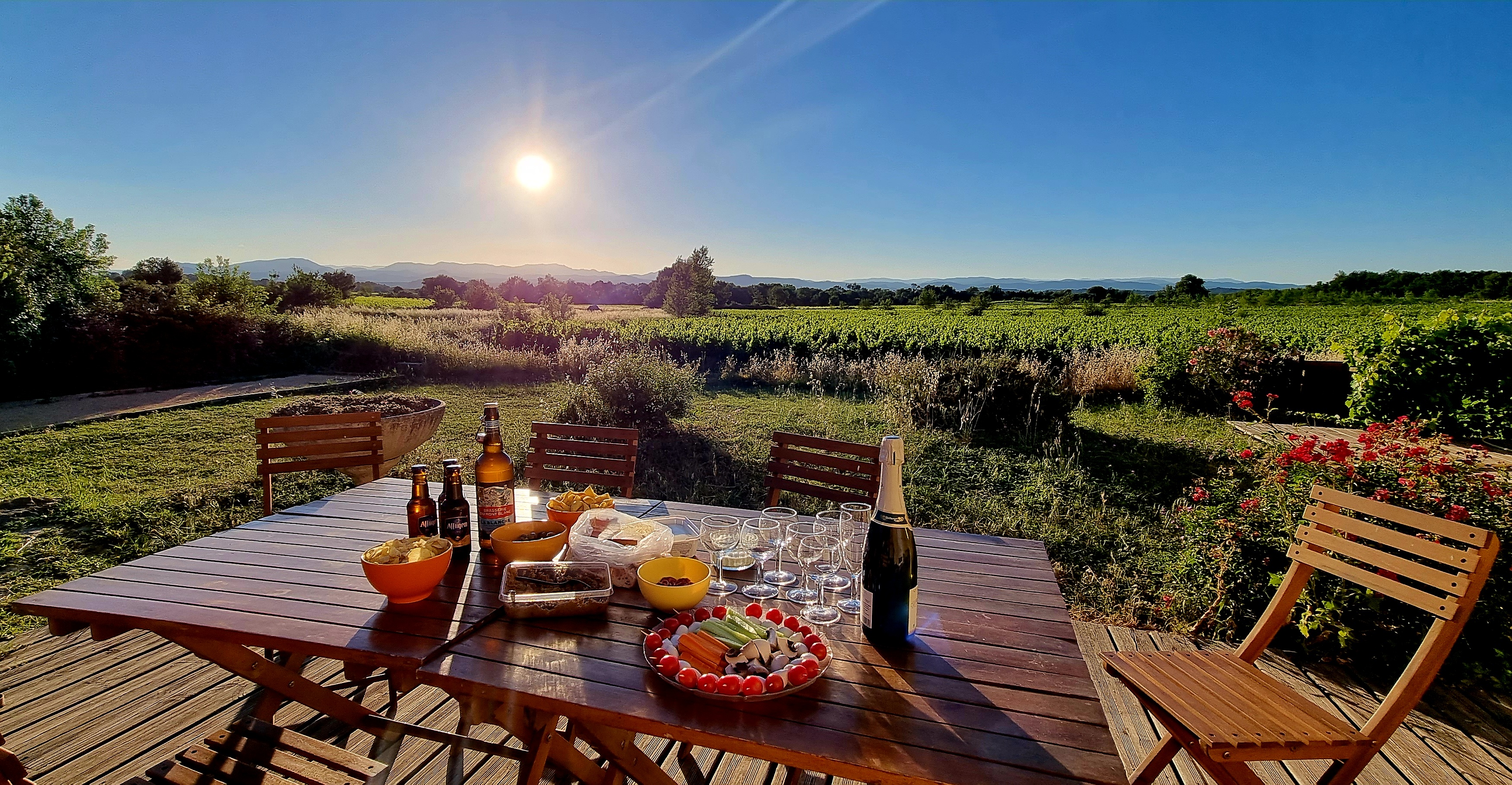 Rapport qualité/prix imbattable ! Mais alors pourquoi pas 5 etoiles? En voici les raisons : les (maison+studio) logements n etaient pas propres a notre arrivée; poussière, toiles d araignées, fourmis, canalisations bouchées ou odorantes. Un manque de serieux dans le ménage (derniers occupants?Manque de présence des proprios?) est le bémol du sejour (3 jours). Certaines literies vieillissantes sont a revoir car des lits 2 places avec 2 matelats collés qui ne sont pas a la même hauteur c est limite pour bien dormir...! Sinon, le cadre est magnifique sur les vignes et l'horizon, terrain de boules, piscine, equipements ménagers a gogo et calme absolu ! Idéal pour les regroupements familiaux ou entre amis (enfants inclus : ils ont tellement de quoi s occuper que nous ne les avons presque pas vu !). Conseils : impossible de manger sous la pergola, une toile sous les jeunes vignes grimpantes pleines d abeilles qui butinent et font tomber le pollen dans les verres et les repas, serai appreciable ! Peut-être que des moustiquaires serai plus adaptées aux prises electriques sous produits chimiques et plaques citronnées? :) Une climatisation serai souhaitable et plus ecologique que plusieurs ventilateurs vieillissants. Et enfin, quelques travaux d'entretiens seraient les bienvenus car le Mas est surtout des extensions multiples d'une maison principale. JE RECOMMANDE ce logement, nous y avons tout de même passés un excellent séjour avec des nuits etoilées a couper le souffle !